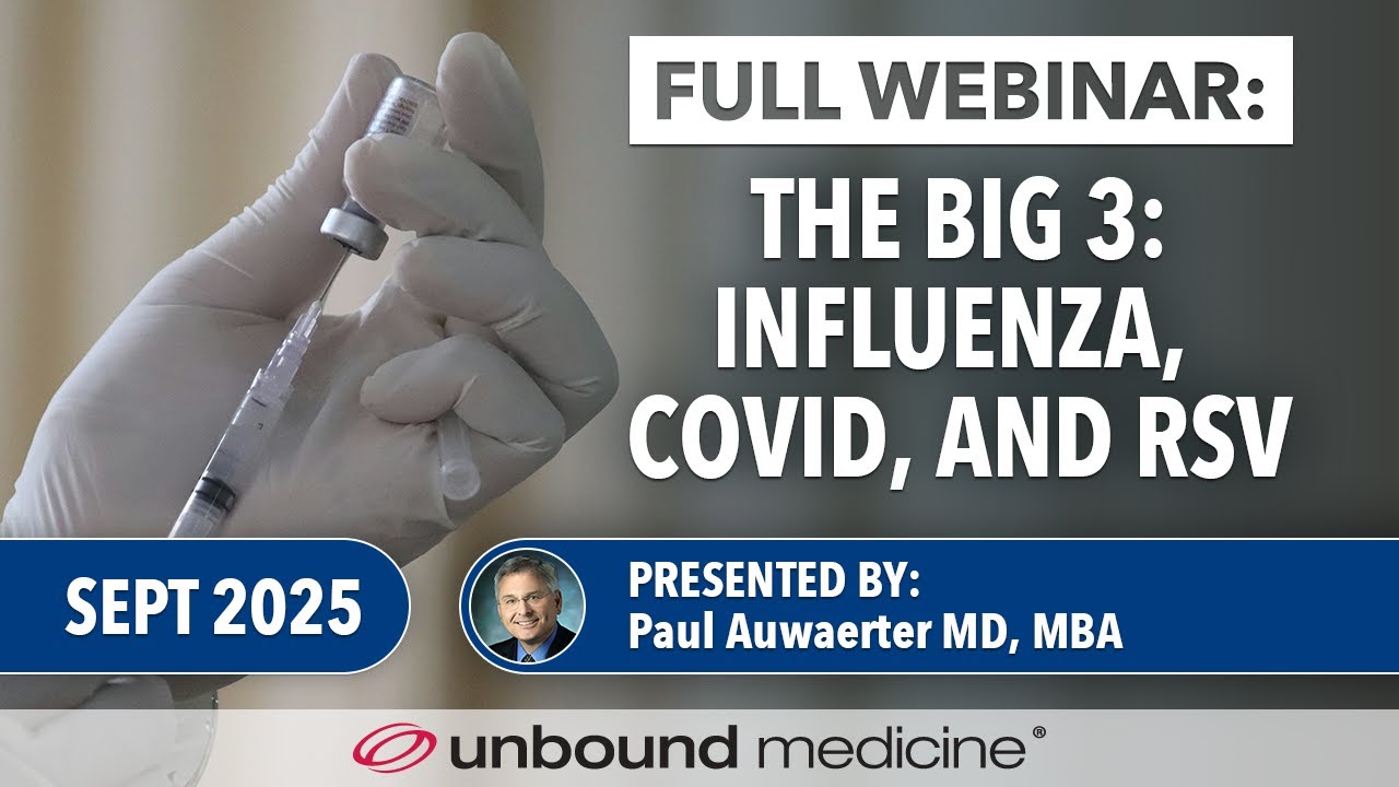 This webinar covers the latest updates and addresses common questions regarding COVID-19, Influenza, and RSV vaccines, helping clinicians navigate recent changes and clarify areas of confusion. A live Q&A with Dr. Paul Auwaerter follows the presentation.
