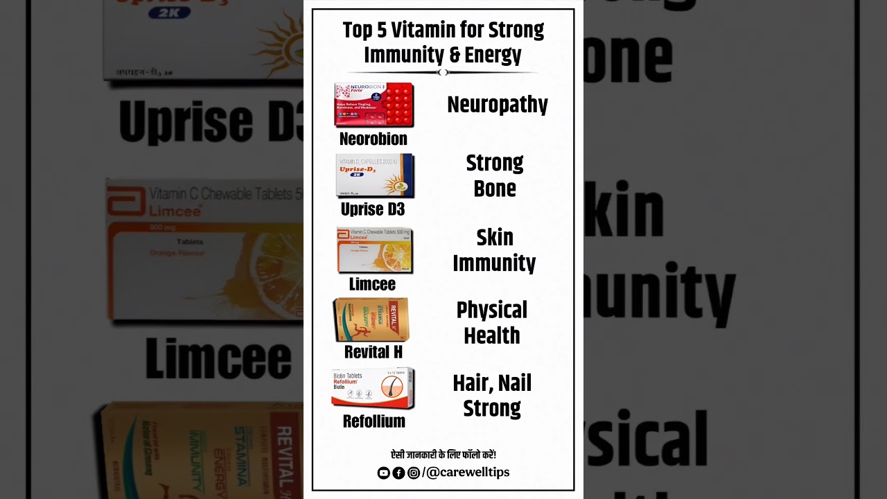 #TopVitamins #HealthTips #ImmunityBooster #Neurobion #UpriseD3 #Limcee #RevitalH #Refolium #EnergyBoost #Multivitamins #DoctorRecommended #PharmacyTips #HealthAwareness #MedicalKnowledge #HealthcareIndia #EssentialVitamins #VitaminSupplements #DailyHealth #HealthShorts #ViralShorts #MedicalLearning #HealthcareReels #CarewellTips #DoctorLife #NurseLife #HealthyLifestyle #HealthEducation #StayHealthy #StrongImmunity #VitaminGuide #IndianMedicines