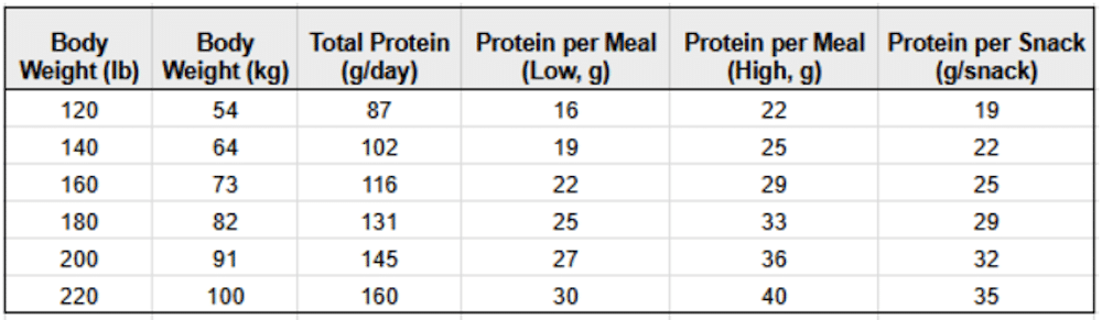Baseline: 1.6 g/kg = ~110 g protein/day