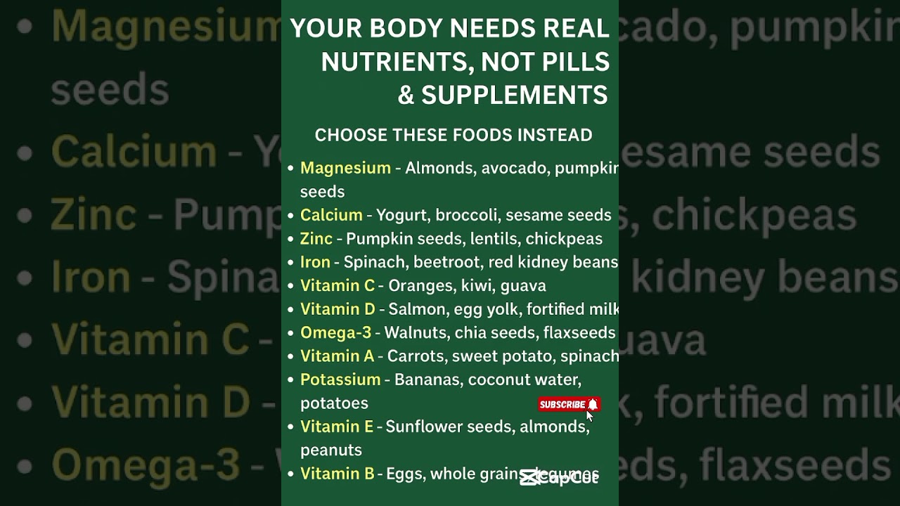 This video reveals the top natural foods rich in essential vitamins and minerals like magnesium, calcium, zinc, omega-3, vitamin A, vitamin D, and more.