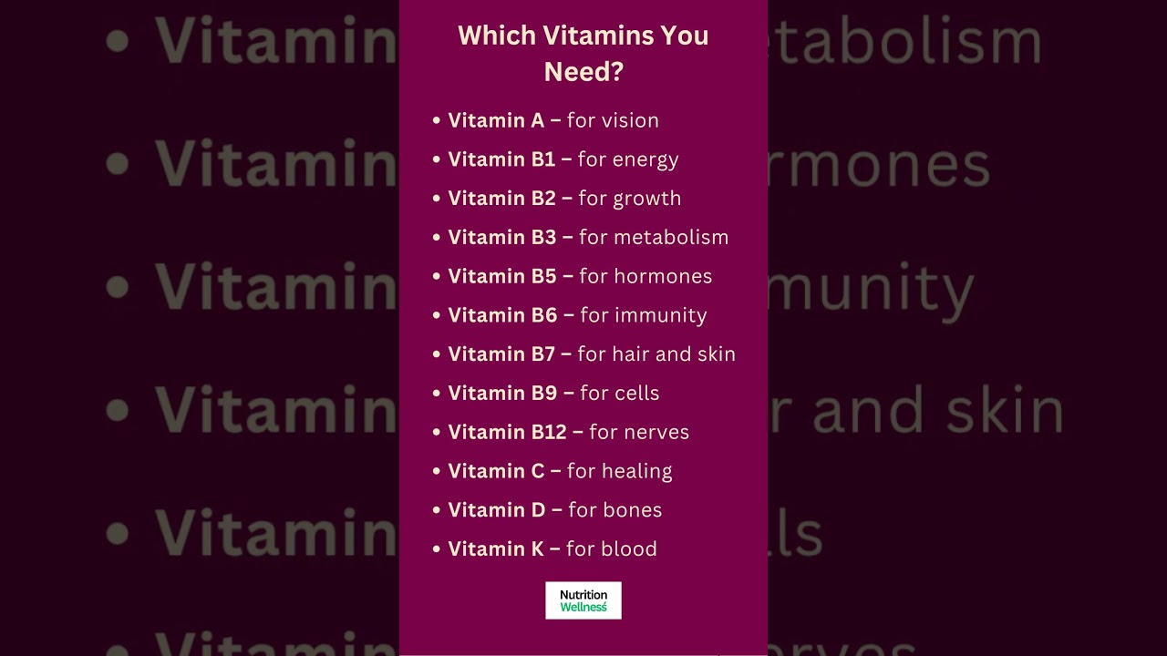 vitamins what you need and why, vitamin cheat sheet, vitamin guide, vitamin A, vitamin B1, B2, B3, B5, B6, B7, B9, B12, vitamin C, vitamin D, vitamin K, vision, energy, metabolism, hormones, immunity, hair and skin, nerves, healing, bones, My Health Tips, nutrition facts, wellness