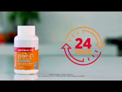 Nutra-Life Ester-C keeps working throughout the day for 24 hours, now with added probiotics for digestive health. Because no matter how busy you get, Nutra-Life keeps working – even when you stop.