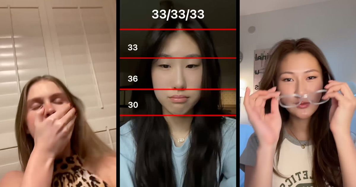 Yeung tried the “33 33 33 face filter” with lines that sliced her face into thirds. “My midface measured longer,” she tells me. Seeing her “long face” quantified onscreen made it feel clinical, like she’d been diagnosed with something. But, as one viral stitch reacting to a “long midface” tutorial puts it, “What the fuck does that even mean?”