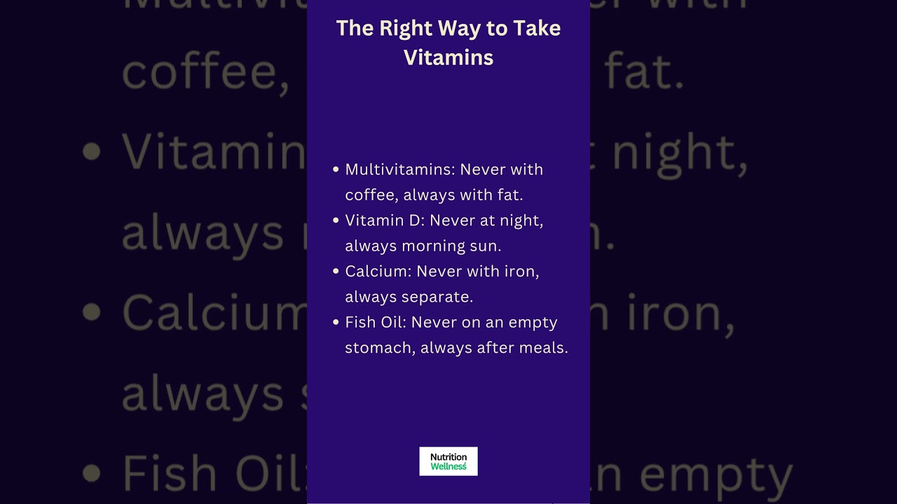 vitamin absorption, how to take vitamins, supplement timing, multivitamin benefits, vitamin D, calcium and iron, fish oil benefits, gut health, nutrient bioavailability, wellness tips, nutrition hacks, healthy lifestyle, supplement mistakes, daily vitamins, Nutrition Wellness, holistic health, diet tips, vitamin safety, morning routine, nutritional advice, absorb more vitamins, best time for supplements
