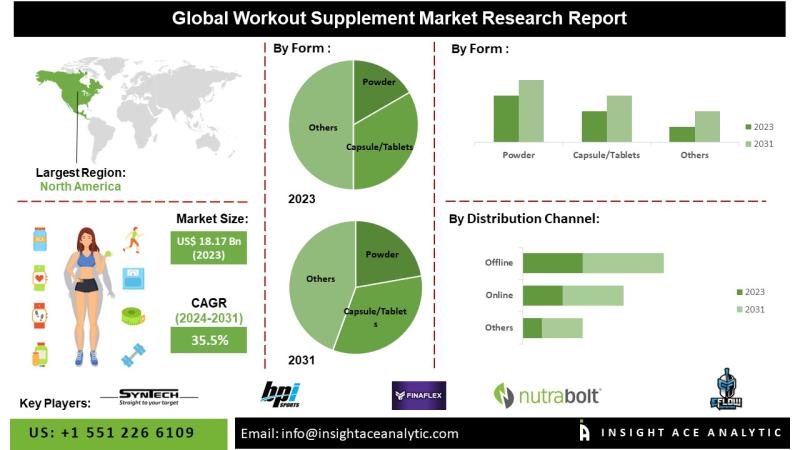 InsightAce Analytic Pvt. Ltd. announces the release of a market assessment report on the “Global Workout Supplements Market – (By Product Type (Powder, Capsule/ Tablet, Drinks), By Distribution Channel (Supermarkets & Hypermarkets, E-commerce and Online Stores, Drug stores and Pharmacies, Other Offline stores)), Trends, Industry Competition Analysis, Revenue and Forecast To 2031.”