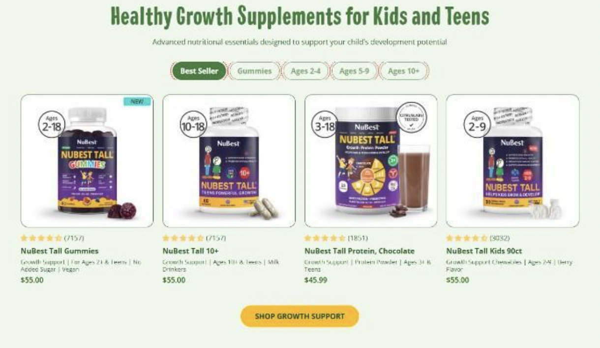 NuBest is a wellness-focused supplement brand that zeroes in on child and teen development—especially height growth. Born from a mission to support natural growth and immunity, NuBest quickly found traction in the U.S. by focusing on something many American families care deeply about: giving their kids a healthy edge.
