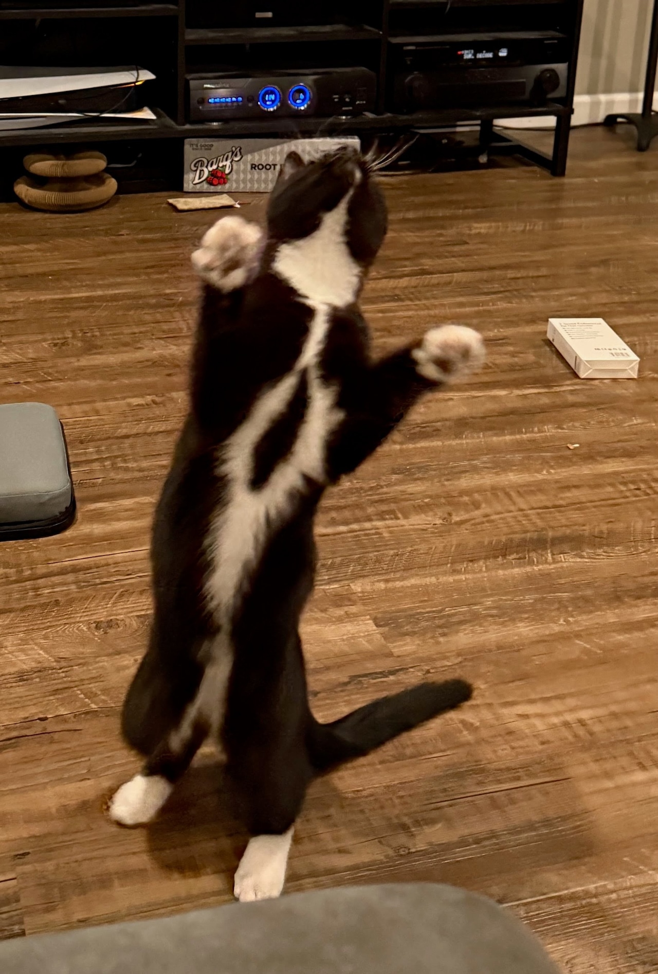 Tom Ford has some great advice for anyone looking to stay fit this year. He recommends to always start working out with a good s-t-r-e-t-c-h . He loves to demonstrate his technique constantly (and whenever he’s chasing a wand toy).