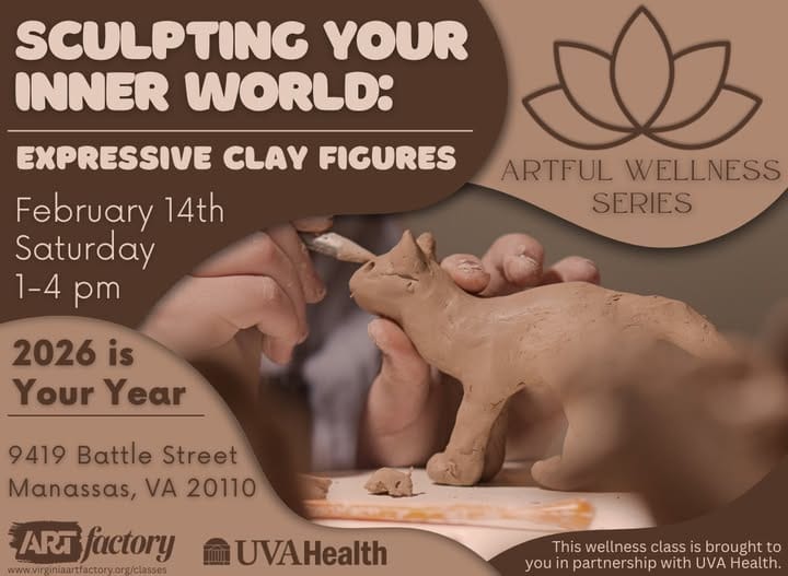 Join us for this exciting and hands on workshop from our ARTful Wellness Series, brought to you by UVA Health! [Submitted Post].“Join us for this exciting and hands on workshop from our ARTful Wellness Series, brought to you by UVA Health!” Virginia ARTfactory announced. “ ‘Sculpting Your Inner World’ is an invitation to explore your emotions and intentions through three-dimensional form.”