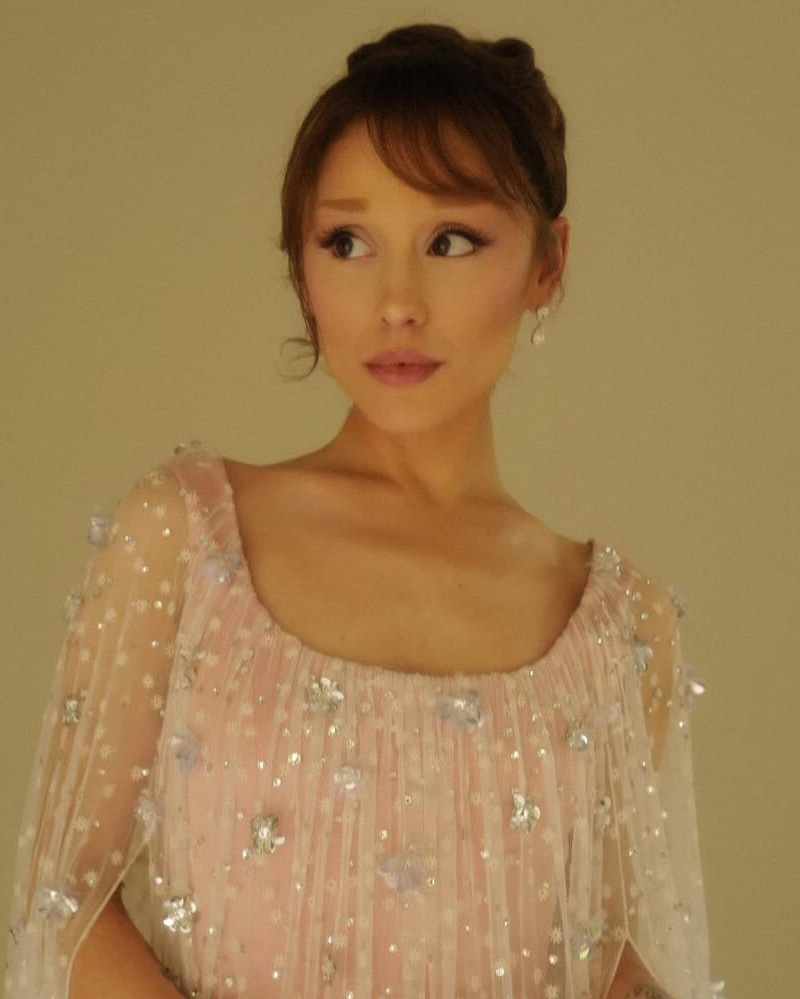 These are her brunette days. After a long blonde era for her Wicked season, Ariana Grande is seriously reminding us what we’ve been missing this whole time. Prettily pulled up into a soft, curled ponytail updo, she serves us lovely eyeshadow tones with her new R.E.M Beauty quad elevated by a light-catching gloss that looks divine.