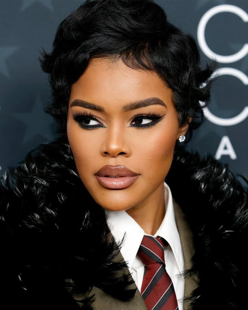 Teyana, Teyana. The singer-actress has been on the up and up—especially with her style cards—and this beauty delivery at the Critics Choice didn’t miss the mark. Talk about an exquisite coal smear around the windows to her soul, and a two-tone glossy pout that redefines what a nude lip can look like.