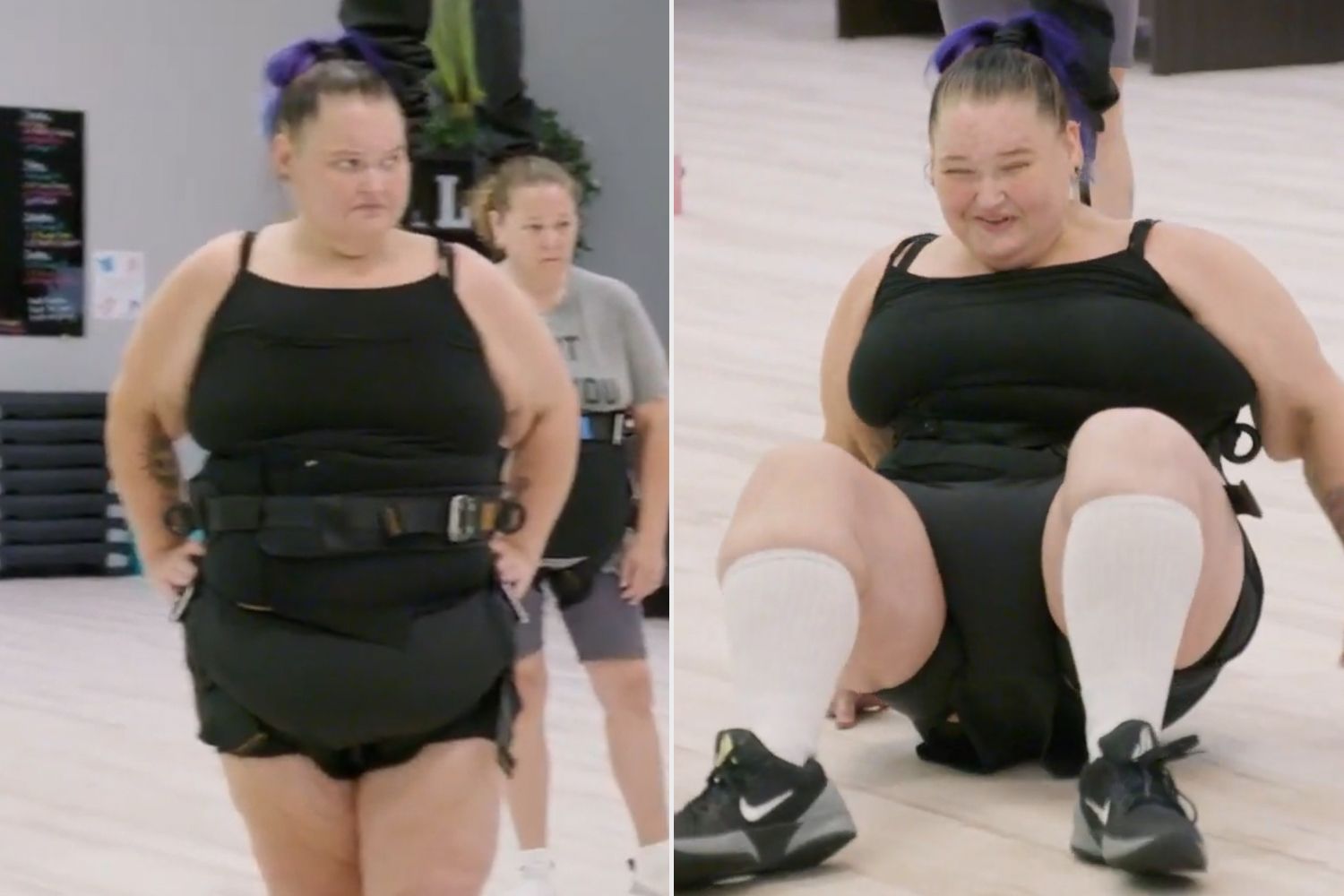 Amy Slaton says she’s been doing well in her weight-loss journey and tries a bungee fitness class alongside her sistersAfter struggling in the harness because of her excess skin, the reality star takes a hard fall, teasing that it felt like “a rubber band pulling me back on my ass”The new episode of 1000-Lb. Sisters airs Tuesday, Feb. 3 at 9PM ET/PT