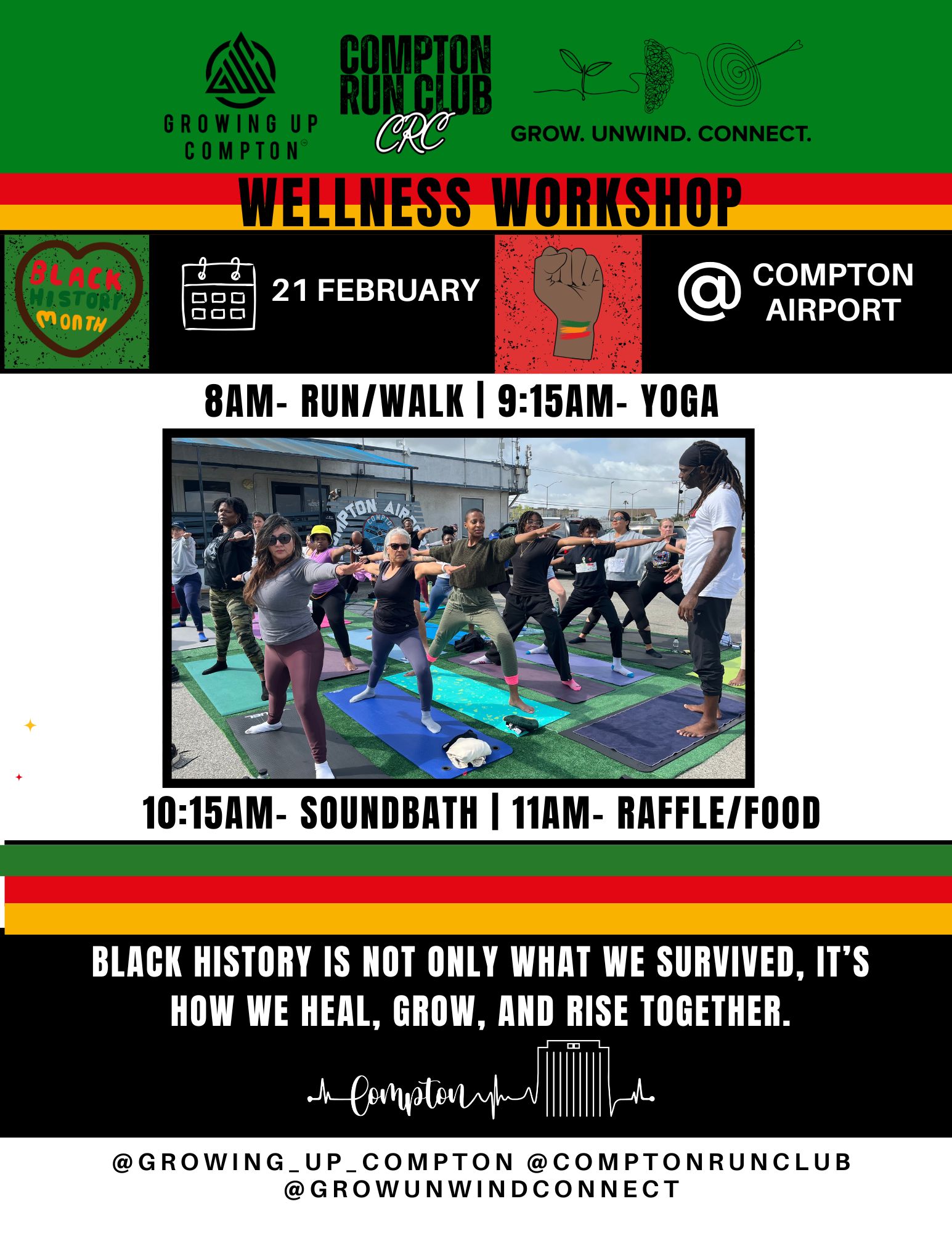 Later in the month, on Friday, February 21, Jones will host a GUC Wellness Workshop at Compton Airport, honoring Black History Month and celebrating the three-year anniversary of his monthly, donation-based wellness workshops in Compton.