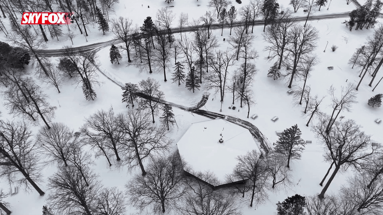 On Thursday, the SKYFOX drone explored the snowy scenes on display throughout the Allouez park.