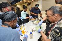 Chef Cam Sheppard, center, runs the hands-on portion of a culinary class to help people learn how to manage hypertension through the food they eat. The class was held Jan. 29 at Corewell Health Center for Wellness in downtown Benton Harbor.