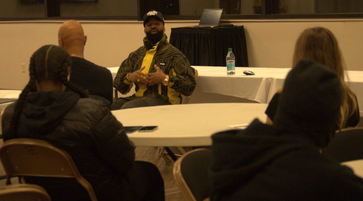 Featured Photo: Jay Michael Martin Jr., public speaker and multimedia personality, talking to the crowd at the first ENTICE Series event that occurred Tuesday, Feb. 4, 2026, at the University of Tennessee at Martin’s University Center. (Pacer Photo / Rose Evelyn)
