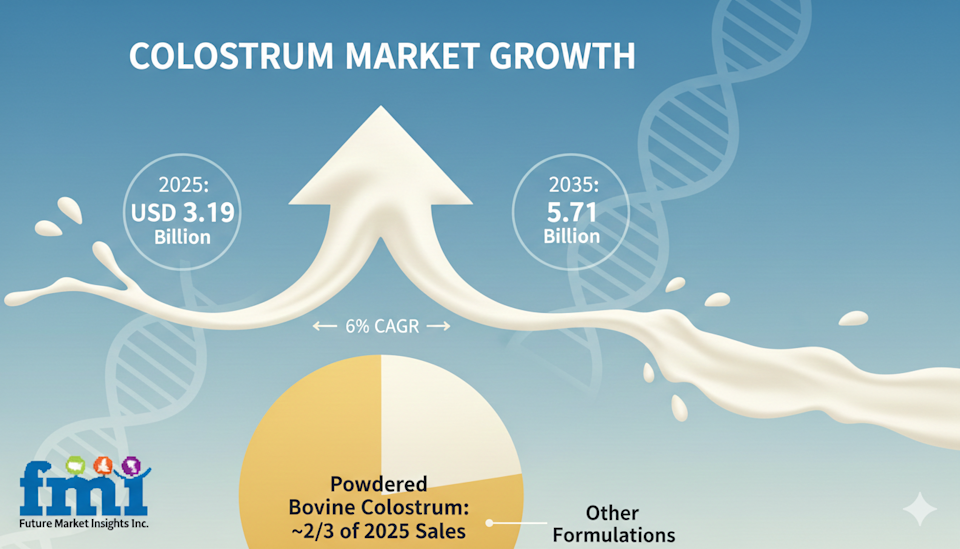NEWARK, DELAWARE / ACCESS Newswire / February 9, 2026 / The global colostrum market is entering a decisive growth phase, driven by expanding applications in sports nutrition, immunity support, infant formula, and emerging medical nutrition. Sales of colostrum are valued at USD 3.19 billion in 2025 and are projected to reach USD 5.71 billion by 2035, advancing at a 6.0% CAGR over the forecast period. This growth reflects a broader consumer pivot toward bioactive, naturally sourced ingredients with clinically supported benefits.