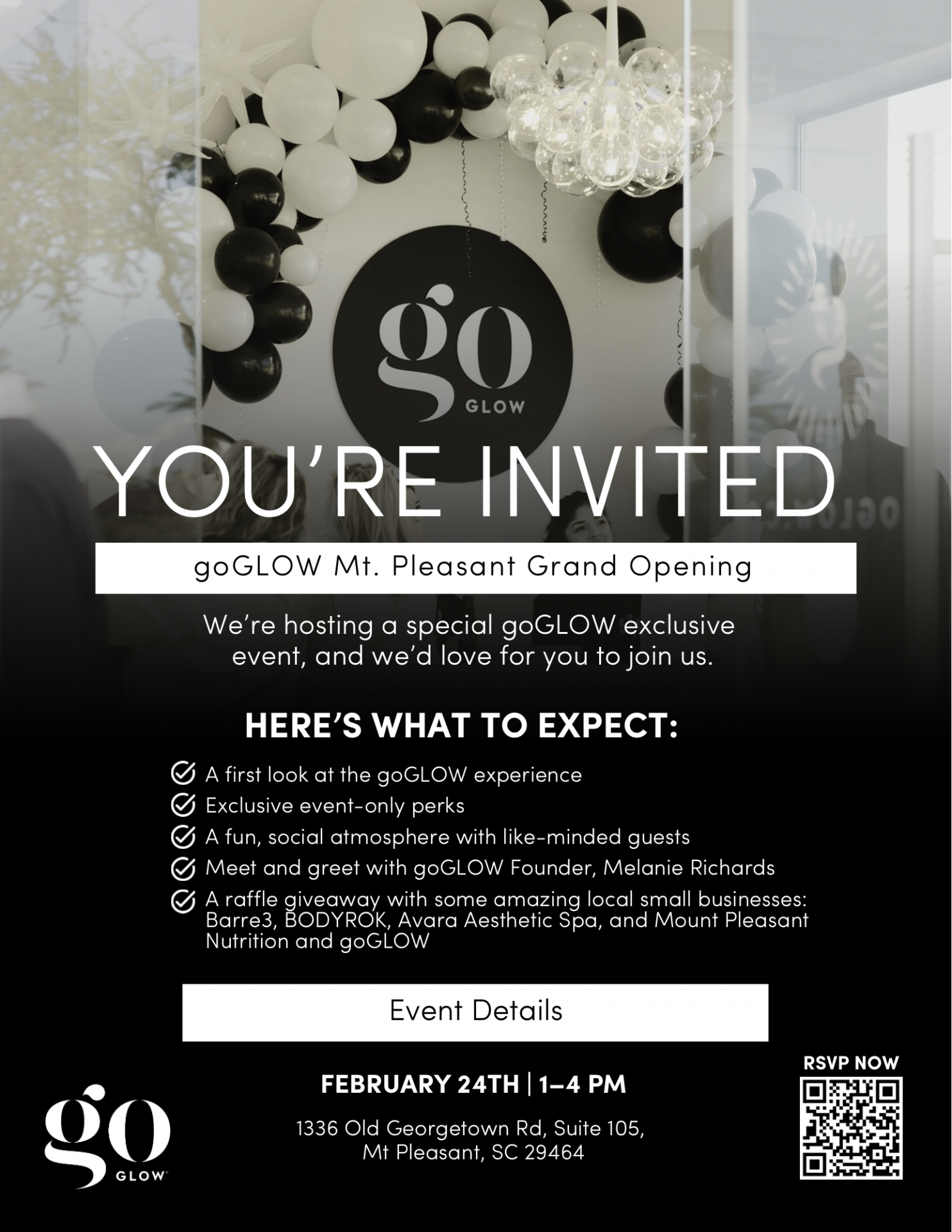 Founder and CEO Melanie Richards will also attend the grand opening to support the Mount Pleasant team and welcome the community as goGLOW continues its national growth. Richards, who founded goGLOW after beginning her career in public service, built the company with a focus on confidence, empowerment, and creating meaningful client experiences.
