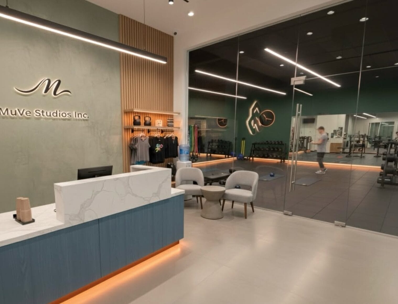 Once open, the offerings at MuVe Studios will include yoga, pilates, personal training, apparel, massage chairs, a personal sauna and complimentary coffee and espresso.