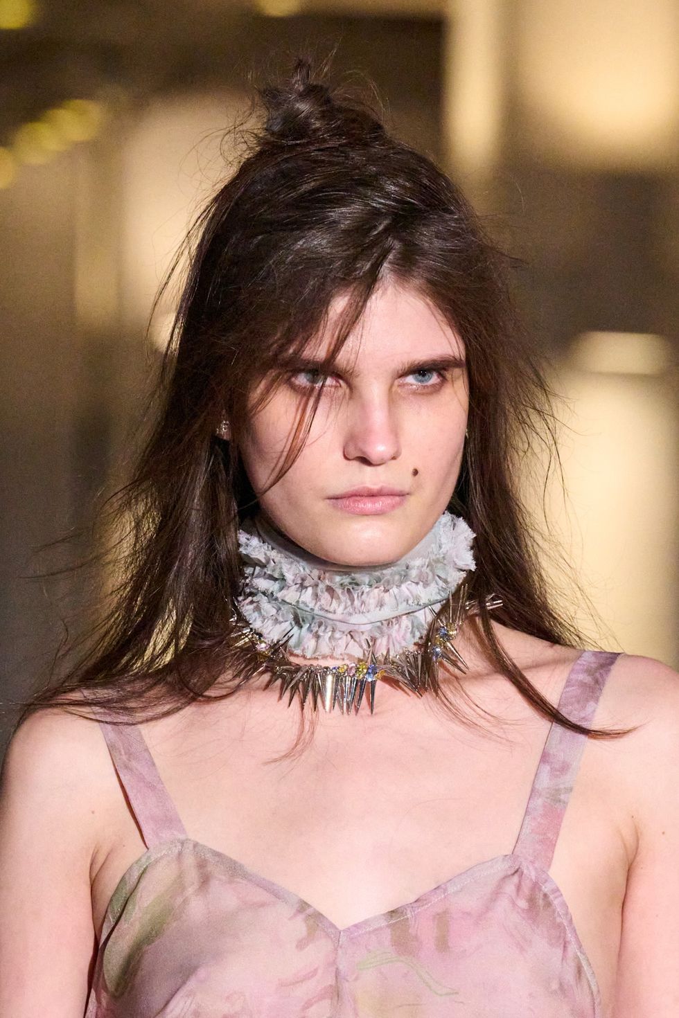 We’ve seen beauty lean towards a more lived-in look, and now runways are embracing it too. At Coach, models walked the runway with hair by Guido Palau that was frizzy, with noticeable flyways—the way the average person’s hair would look a few hours into a day out and about. At Collina Strada, where Mustafa Yanaz’s masterful wigs were once again the talk of the town, quieter looks were also in the mix. What caught my eye were the teased styles that felt expressive. “It is about embracing texture and seeing how the hair wants to move, so the result feels instinctive rather than overworked,” Yanaz said backstage.