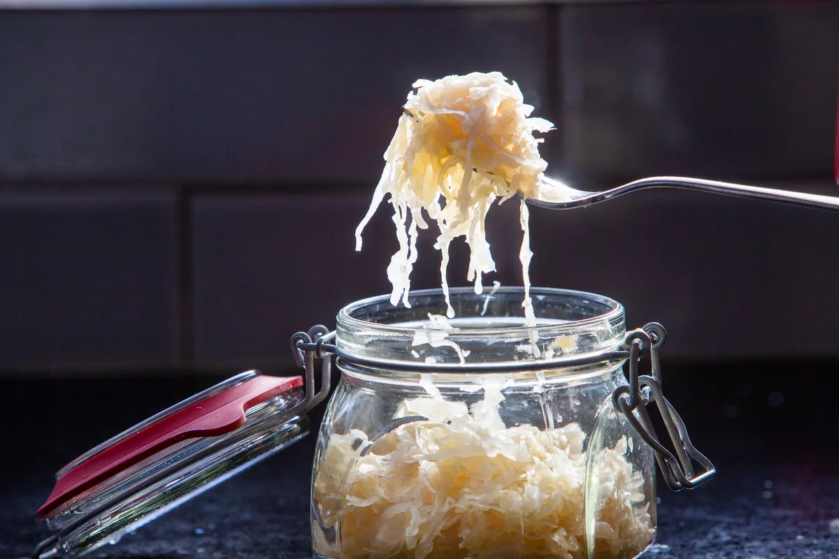 Sauerkraut, a German fermented cabbage, is rich in vitamins and probiotics. Getty Images