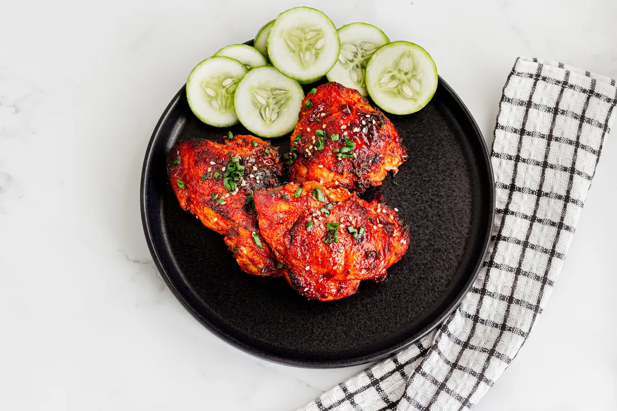 Don’t confuse a sports nutritionist’s kitchen supplies for boring, as these gochujang chicken thighs show. Getty Images