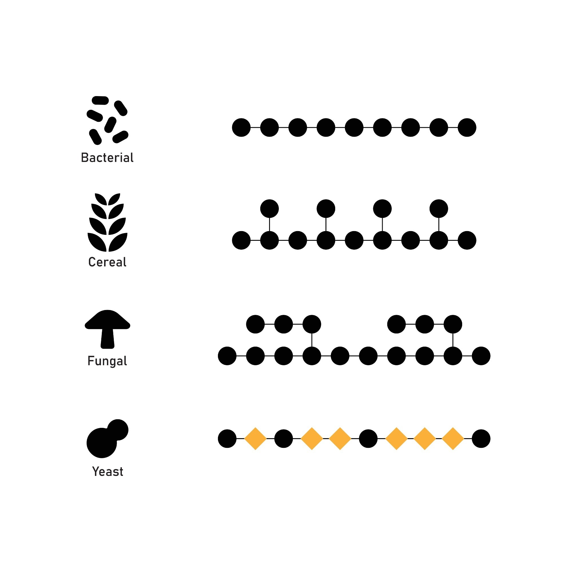 Beta-glucans are glucose polymers found in cereal grains and fungal cell walls. Cereal β-glucans contain β-1,3 and β-1,4 linkages, while fungal β-glucans typically consist of a β-1,3 backbone with β-1,6 branching structures.4,5