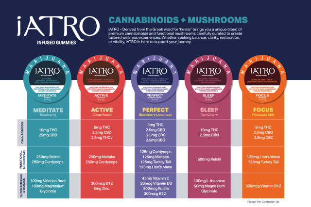 iATRO Wellness (pronounced eye-AH-tro, from the Greek word for healer) is a new entrant to Missouri’s market that’s built around a different premise. Instead of selling by strain name or cannabinoid percentage, the brand organizes its full product line around intended experiences: Focus, Active, Meditate, Sleep, and Perfect, a balanced everyday formula.