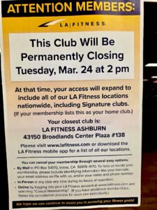 The days are numbered for the LA Fitness in Leesburg. Members are being informed that the gym is closing and the last day will be Tuesday, March 24.