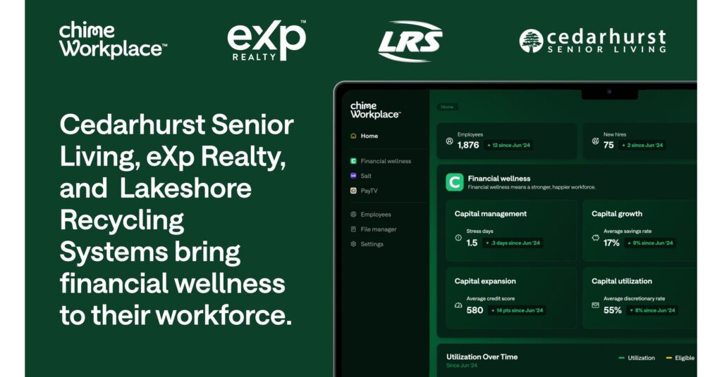 Cedarhurst Senior Living, eXp Realty, and LRS (Lakeshore Recycling Systems) are among the latest employers to implement Chime Workplace to support employee financial well-being and help reduce stress that can impact productivity, retention, and overall performance.