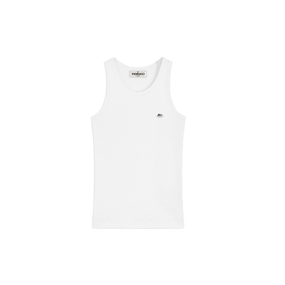 “Those iconic Fiorucci angels got me again. A classic white staple tank—but with a twist. The patch detail makes it feel way more unique and I’m waiting by my mailbox for this to arrive.” – Natasha Sheridan, Social Creative Lead