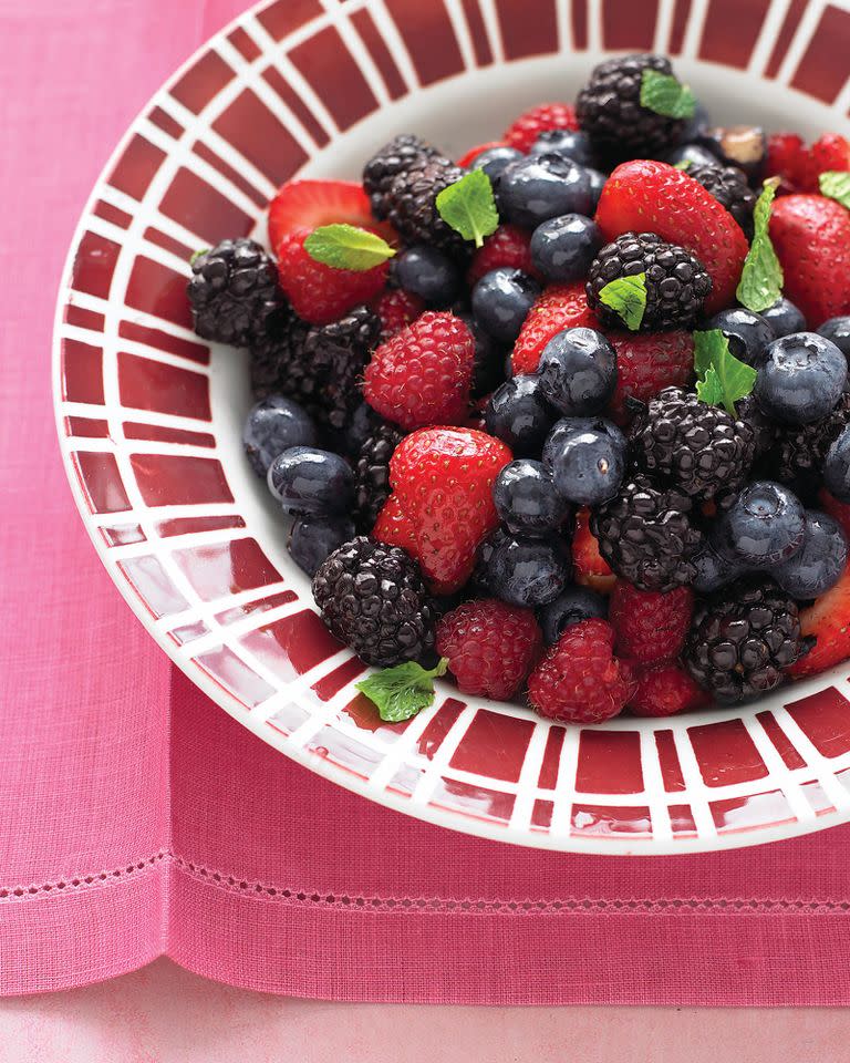 Raspberries, strawberries, blueberries, and cherries are sources of anthocyanins, phytochemicals responsible for the red, purple, and blue pigments. Berries are very high in nutrients and antioxidants, plus they’re an anti-aging food, explains Schmidt.