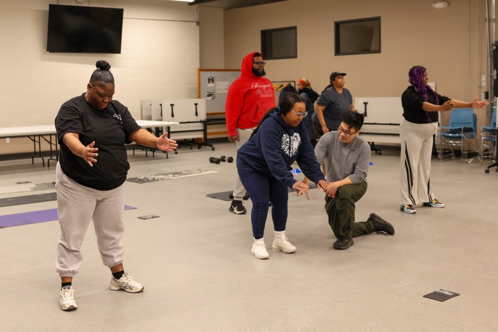 Alvin Wang leads a free strength and conditioning class at Scaling Wellness in Milwaukee, 831 N. 27th St. (Photo by Jonathan Aguilar / Milwaukee Neighborhood News Service / CatchLight Local)