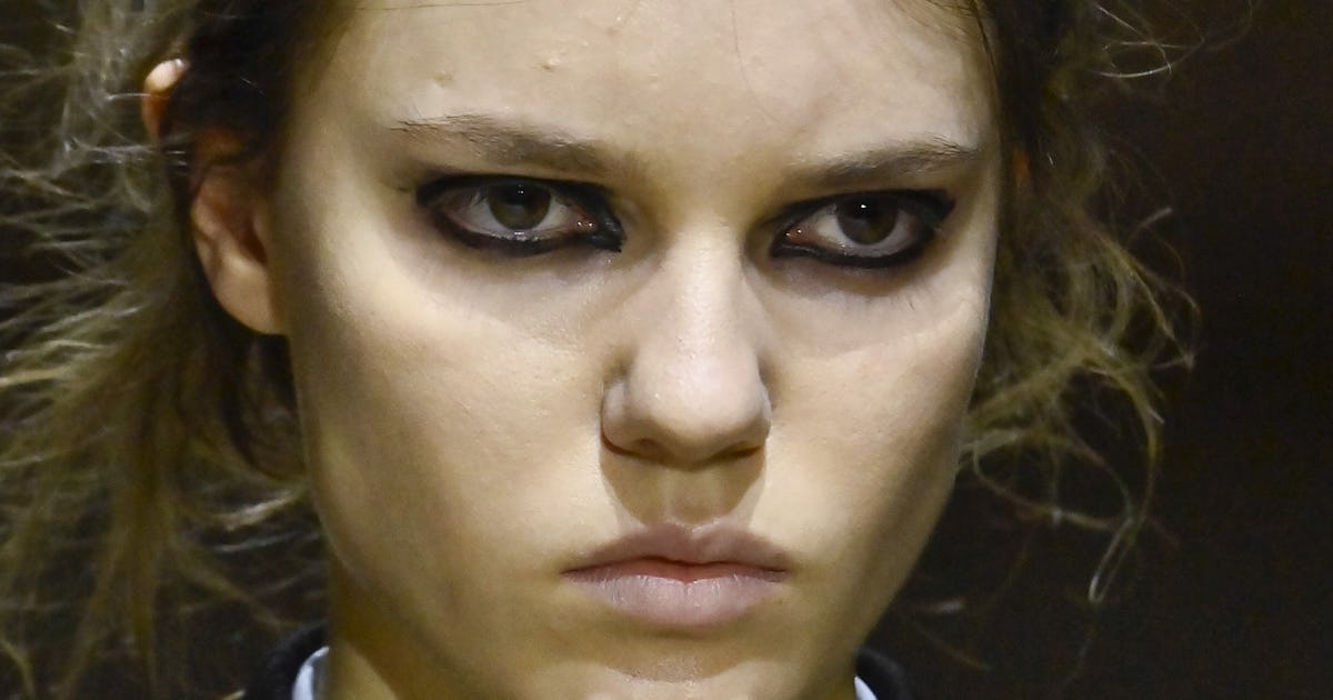 Instead of trying to hide the fact that you stayed out way too late the night before or were up doomscrolling, Prada wants you to embrace your exhaustion. At the designer’s F/W ‘26 show, models had smudged eyeliner (Prada Durable Gliding Eye Pencil in Shade 01 Nero), exaggerated dark circles, minimal foundation, and tousled, greasy hair. So, go ahead and hit snooze tomorrow morning.
