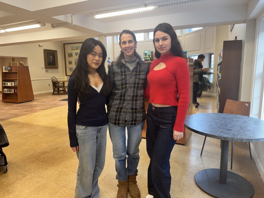 Teen leaders Kyla Cheng (left) and Anastasiia Verliemko (right) with Community of Concern parent volunteer Rebekah Seaton. Photo credit: Melissa Cole