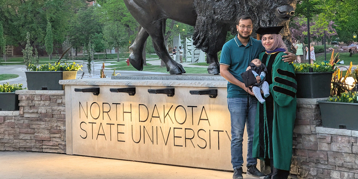 Despite the challenges, she was not alone. Her husband left his job to support her journey, eventually finding his own Ph.D. position at NDSU.