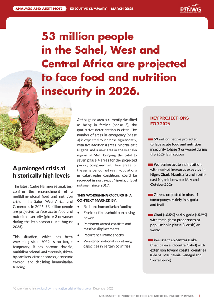 FSNWG Analysis and Alert Note: Executive Summary – 53 million people in the Sahel, West and Central Africa are projected to face food and nutrition insecurity in 2026 (March 2026) – World | ReliefWeb