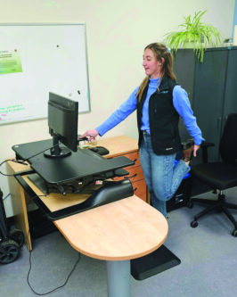 Caylee Vogel, program administrator at the Be Fit for Life Centre, encourages workers to think of these quick bursts of activity as “fitness snacks.”