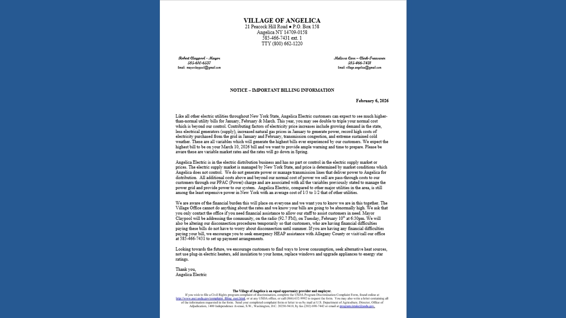 Other municipal utilities report similar challenges. The Village of Angelica warned that some customers’ bills could be “double to triple” their normal amounts, higher, they say, than their customers have ever experienced.