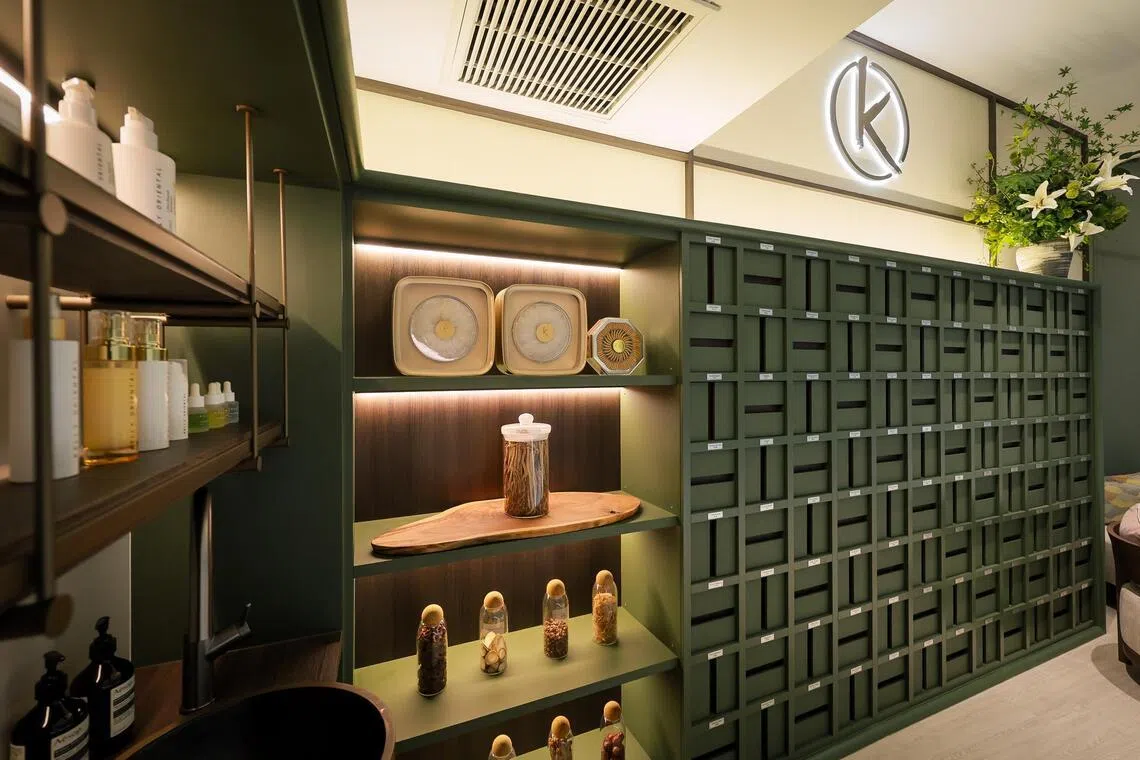 Take TCM spa Kelly Oriental, for example. The two-storey Holland Village joint has a modern forest-green medicine cabinet, pop culture markers like a Betty Boop bearbrick figure and an Hermes bag displayed, as well as machine treatments in its catalogue.