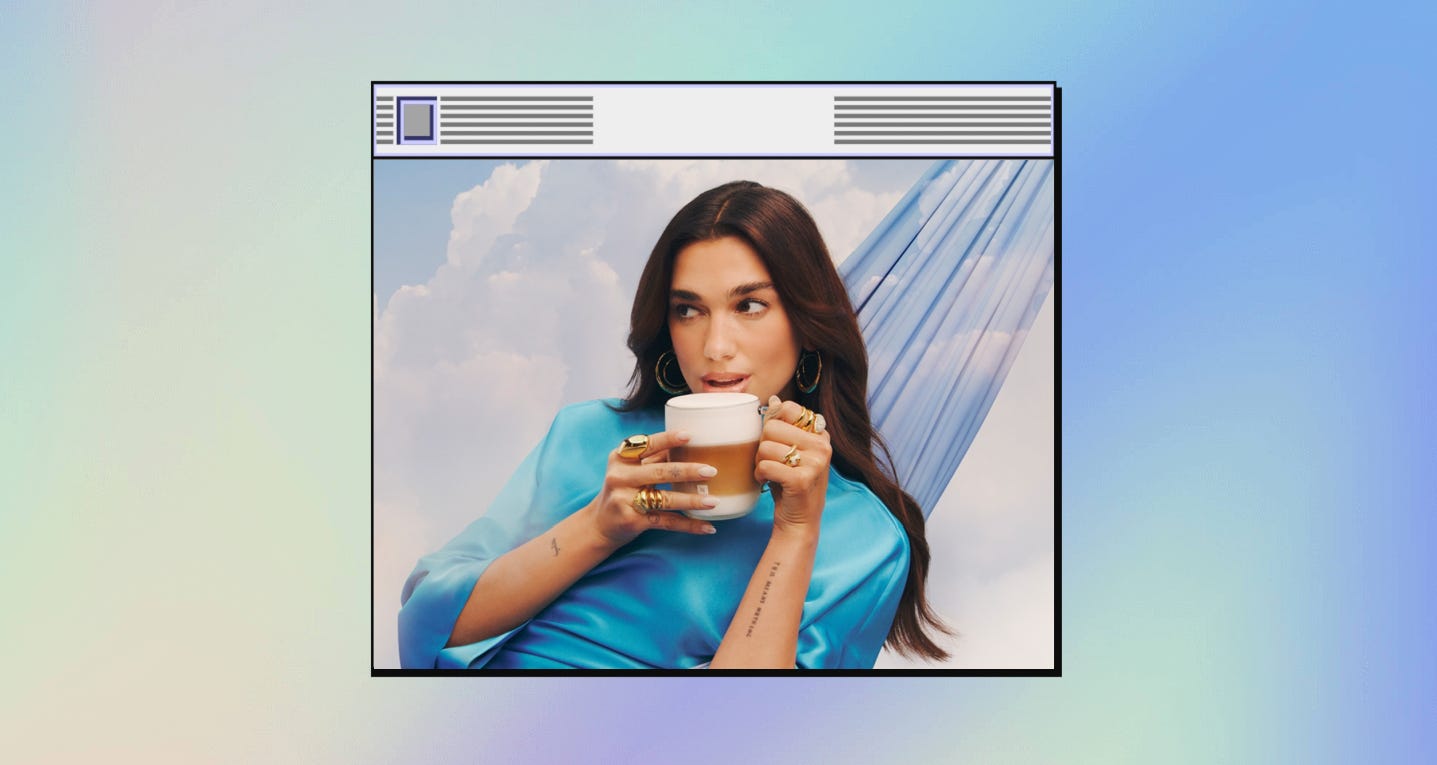 Dua Lipa is Nespresso’s new global ambassador; Maya Hawke and KJ Apa are starring in a Shakespeare-inspired rom-com; Julia Louis-Dreyfus’s 28-year-old son Charlie Hall is, as Vanity Fair puts it, “the latest nepo baby to join The White Lotus”; speaking of, Cruz Beckham is playing Lollapalooza; and “if Mean Girls was set at a Free People in 2026, you’d get Forbidden Fruits.”