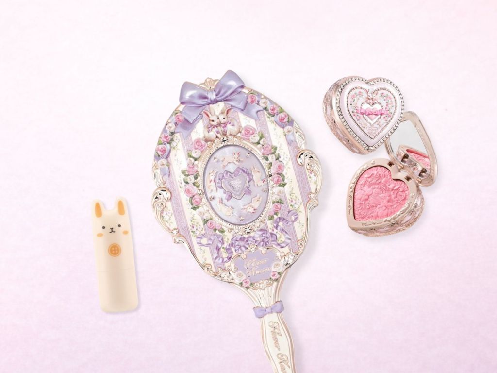 The obvious star here is the Flower Knows Bunny Garden Collection Hand Mirror. It comes in Cloudy Blue, Wisteria Purple, and Rosette Pink, and it has exactly the kind of pastel, whimsical cottagecore princess energy that makes it feel like more than just a practical extra.