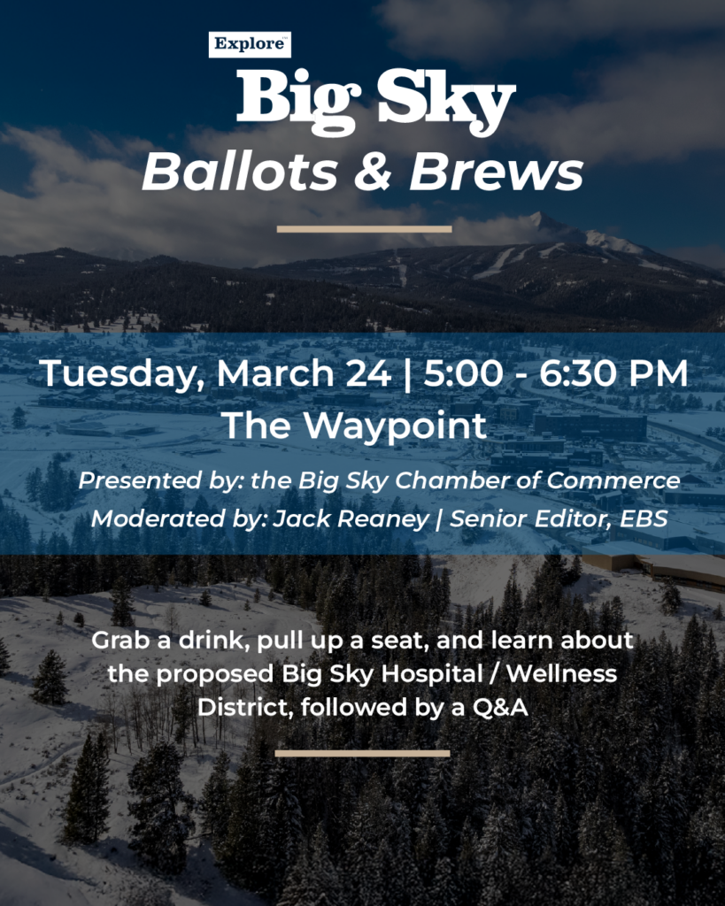 To help voters better understand the ballot measure, two public education events are scheduled, including this week’s Ballots and Brews on Tuesday, March 24. From 5 to 6:30 p.m., the Big Sky Resort Area District and Big Sky Chamber of Commerce will host a free, public event at The Waypoint. The night includes a presentation on the proposal, discussion panel and Q&A moderated by Explore Big Sky’s senior editor, Jack Reaney, concluded by a showing of the film, “The Paradise Paradox,” which explores mental health in mountain towns. The evening will be live-streamed for those unable to attend.