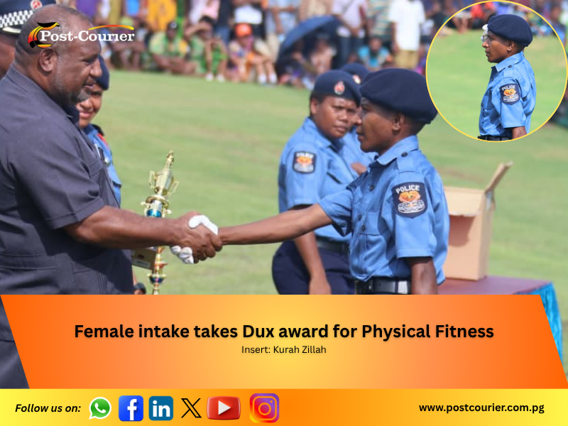 Out of 41 females, the highest number of female recruits, Kurah Zillah from Urit Village, Maprik, East Sepik, received the Dux for Physical Fitness female l category for intake 1/2025.