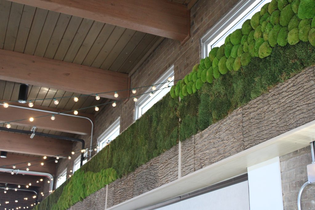 Preserved moss and poplar bark as seen at the new Caldwell Woods Wellness Center. Credit: Molly DeVore/ Block Club Chicago