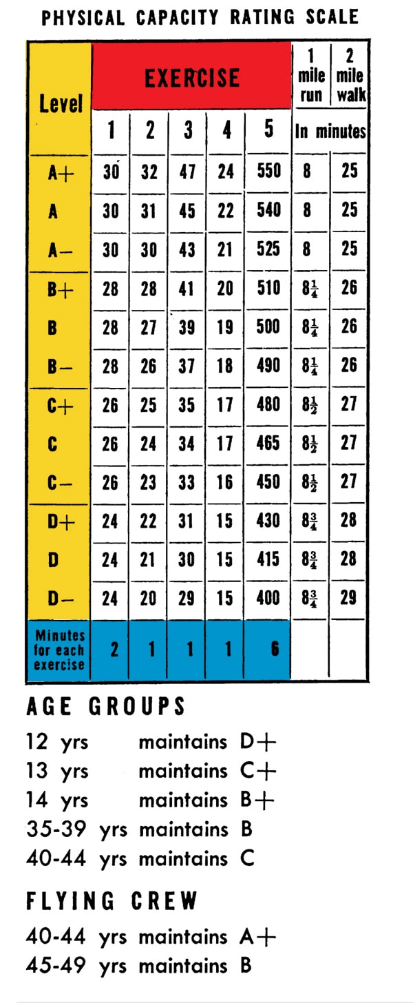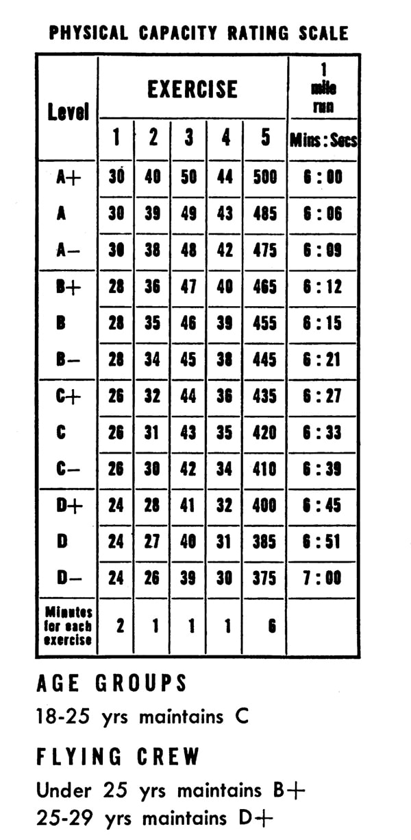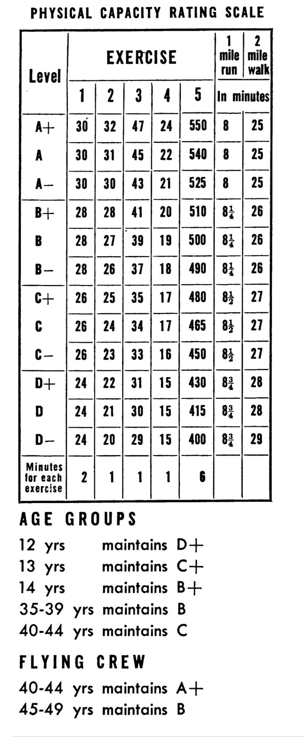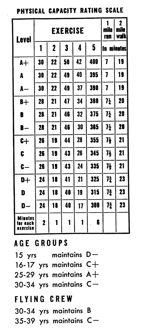 The level of Physical Capacity to which you should progress is determined by your “Age Group.” Levels for “Flying Crew” are listed separately. See “Your Physical Capacity Level” below.