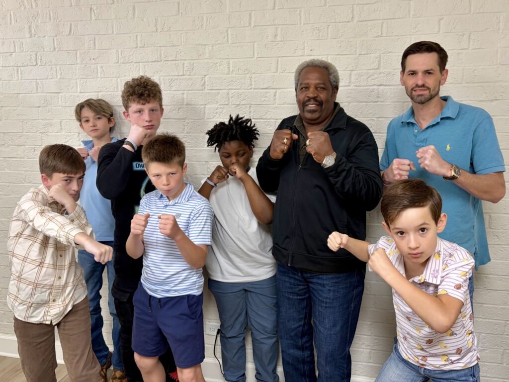 Featured image (above): Ed Modicue, third from right, offers a boxing pose with boys from the Forsythe Church of Christ in Monroe, La.