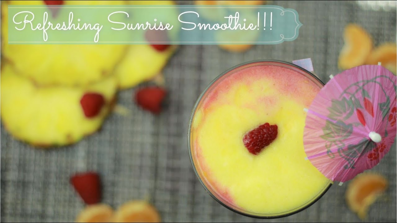 In this video we are making a smoothie with Raspberry,Mango,Orange and Pineapple to give a Sunrise effect of colors.