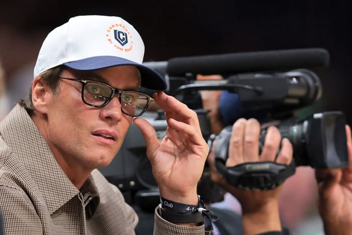 Apr 1, 2026; Miami, Florida, USA; Tom Brady attends the game between the Miami Heat and the Boston Celtics at Kaseya Center. Mandatory Credit: Sam Navarro-Imagn Images