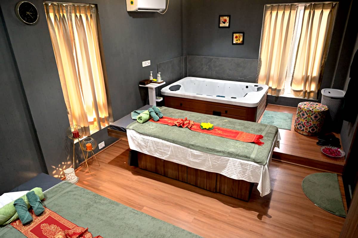 A private escape designed for two, this intimate couple spa room, complete with a soothing Jacuzzi, offers the perfect blend of relaxation and rejuvenation
