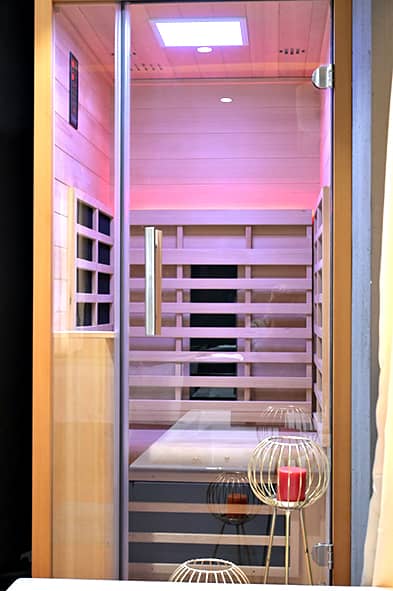 Tucked away in warm wooden interiors, the steam room offers a quiet escape, where heat soothes tired muscles and clears the mind